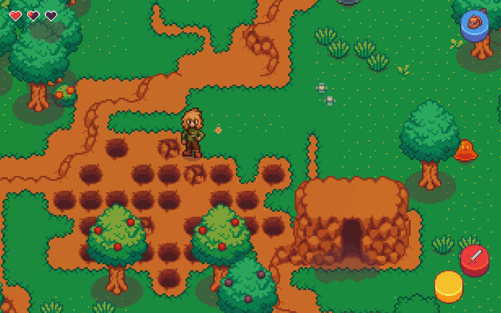 Over the last year I and the team have been hard at work on the Skyros Isles and have updated lots aspects of the game. New game mechanics include throw-able rocks and bombs, updated UI, updated pixel art, new character art, new monsters, and more!